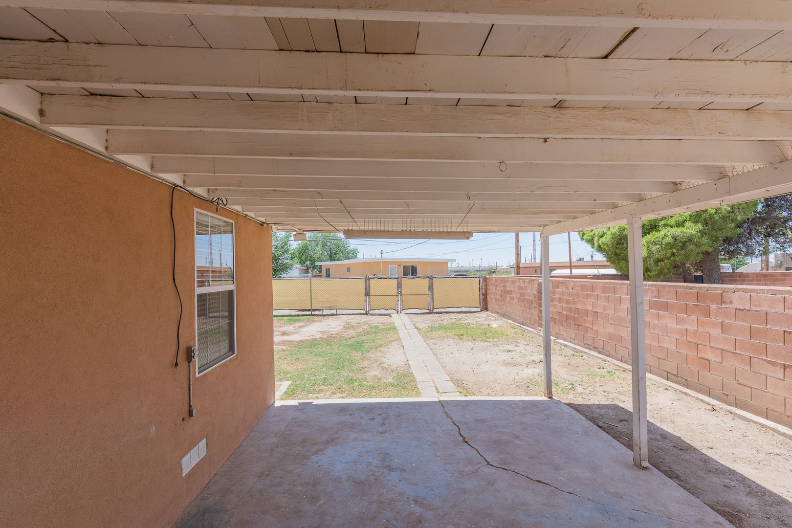 Welcome to this charming 3 bedroom, 2 bathroom home in Alamogordo, NM. This cozy abode features hard flooring throughout, a tub/shower combo, and ceiling fans in each bedroom for added comfort. Enjoy the convenience of off-street parking and a covered patio perfect for outdoor entertaining. The fenced backyard provides a safe space for pets with owner approval, and a shed offers extra storage. With rock landscaping in the front of the home, it adds a touch of elegance and makes for easy yard maintenance. Located near schools, this home is perfect for those looking for a convenient and comfortable living space. Contact us today to schedule a tour of this lovely 3 bedroom 2 bathroom home.